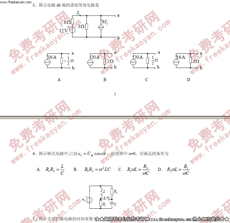 专业课考研经验 本站小编 FreeKaoyan 2018-01-22上海交通大学2003年考研真题-电路基本理论