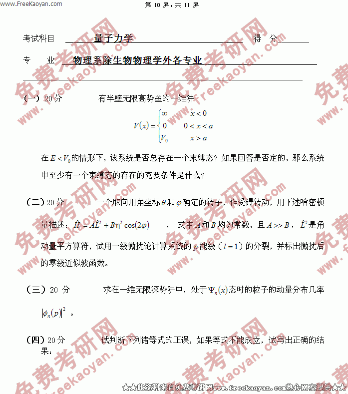 专业课考研经验 本站小编 FreeKaoyan 2018-01-22上海交通大学2005年考研真题-物理专业课