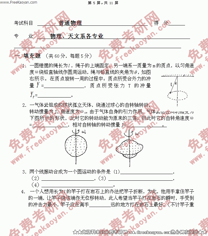 专业课考研经验 本站小编 FreeKaoyan 2018-01-22上海交通大学2005年考研真题-物理专业课