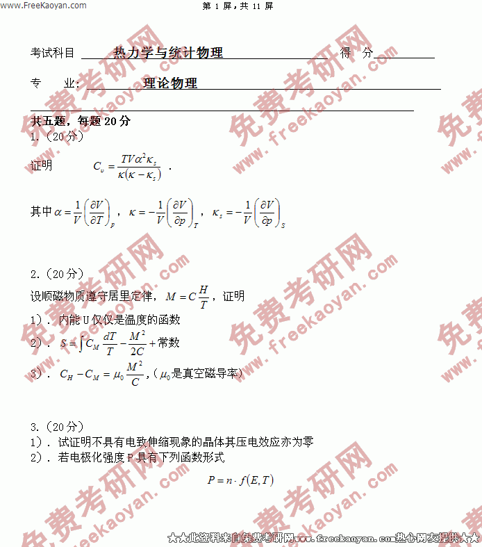专业课考研经验 本站小编 FreeKaoyan 2018-01-22上海交通大学2005年考研真题-物理专业课