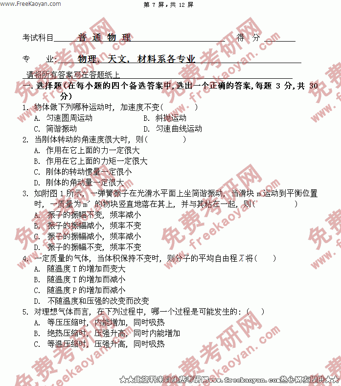 专业课考研经验 本站小编 FreeKaoyan 2018-01-22上海交通大学2005年考研真题-物理专业课