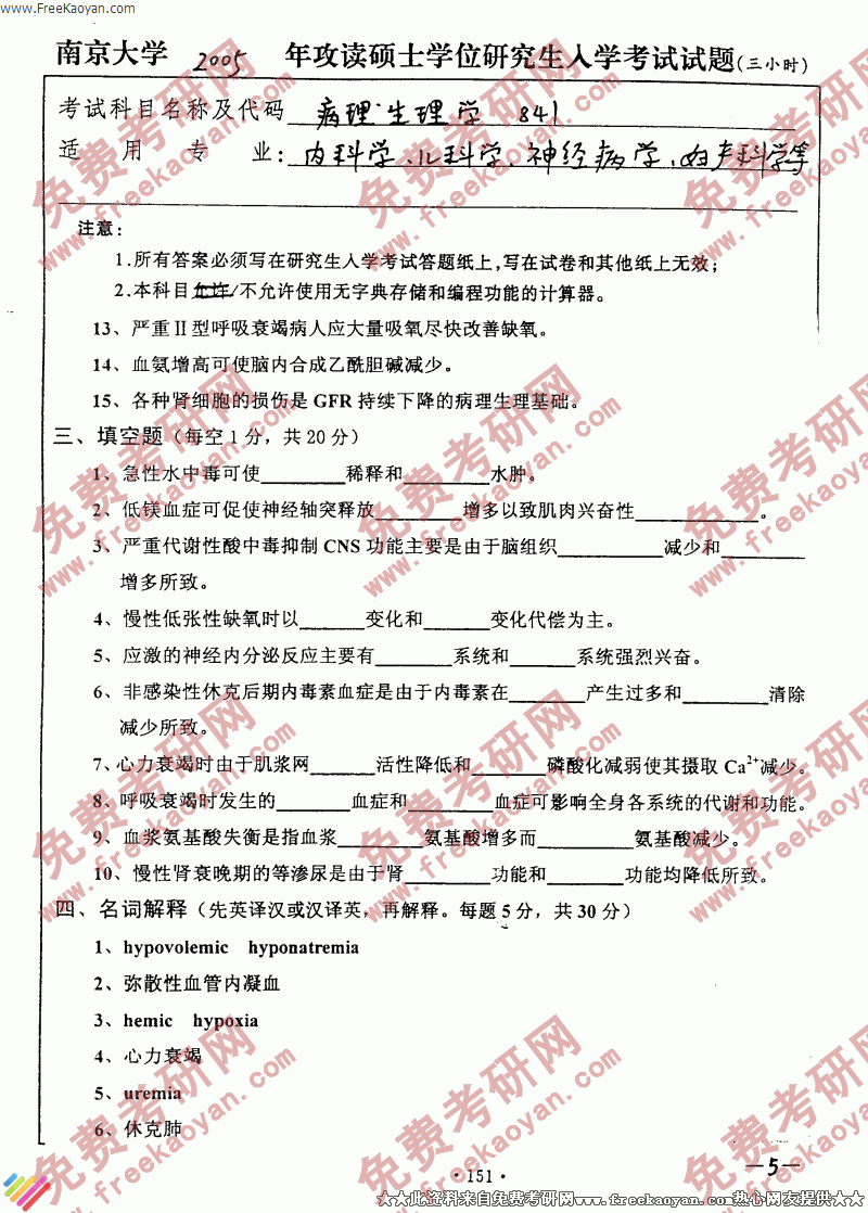 • 南京大学2005年考研真题-新闻采写与文史知识