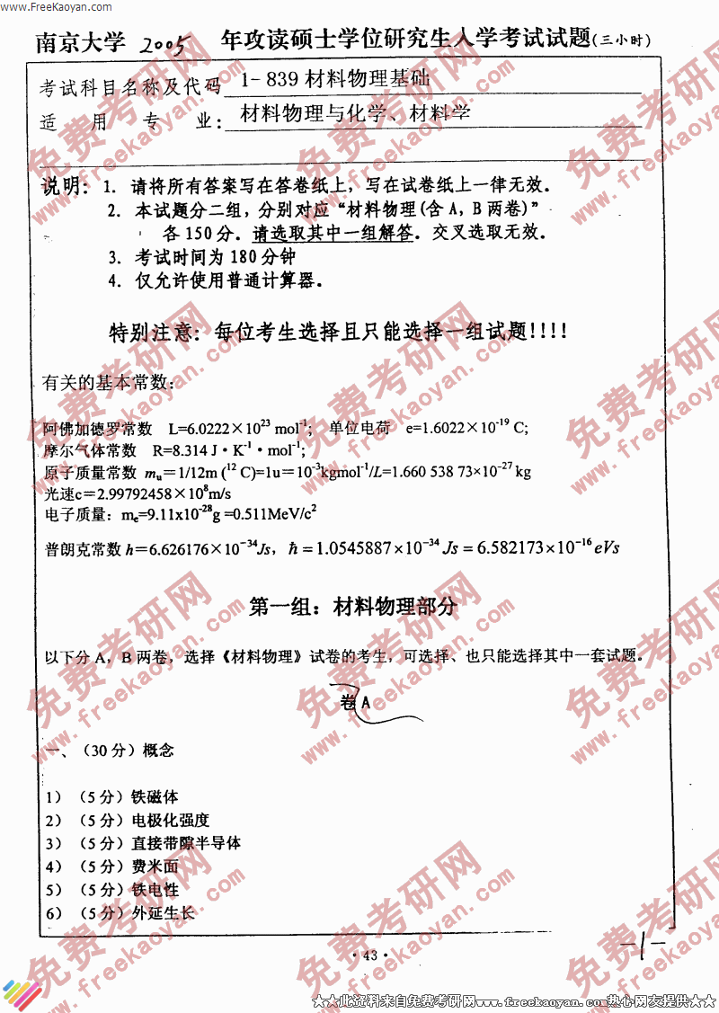 专业课考研经验 本站小编 FreeKaoyan 2018-01-222005年中国近代史 一. 名词解释:(5分*10个) 古德诺公车上书 租界 “进北攻南” “重点进攻” 胡适 国民参政会 《中国之命运》二二八起义 国粹派 二. 论述题:(20分*5个) 1. 列强干涉中国近代政治的主要方式。 2. 1927-1937南京国民政府对日政策的脉络及其影响。 3. 抗 ...