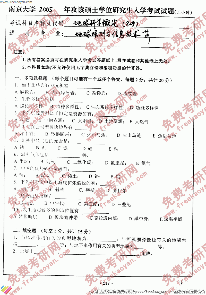 专业课考研经验 本站小编 FreeKaoyan 2018-01-222005年中国近代史 一. 名词解释:(5分*10个) 古德诺公车上书 租界 “进北攻南” “重点进攻” 胡适 国民参政会 《中国之命运》二二八起义 国粹派 二. 论述题:(20分*5个) 1. 列强干涉中国近代政治的主要方式。 2. 1927-1937南京国民政府对日政策的脉络及其影响。 3. 抗 ...