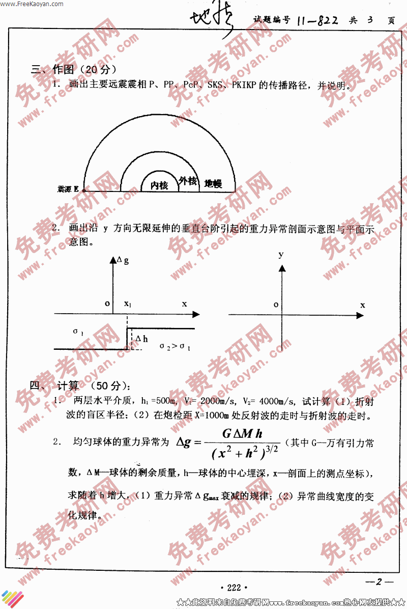 相关话题/考研真题 南京大学 地球物理学