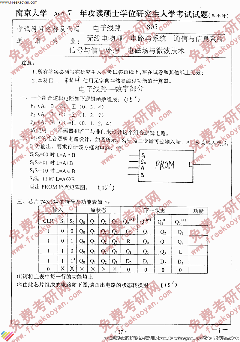 南京大学2005年考研真题-电子线路