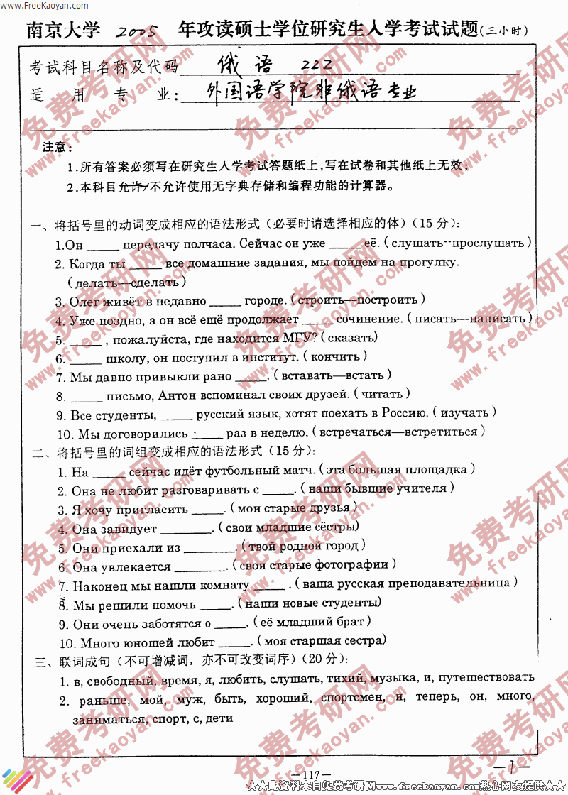 专业课考研经验 本站小编 FreeKaoyan 2018-01-22南京大学2005年考研真题-德语