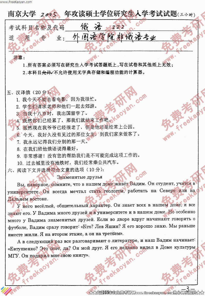 专业课考研经验 本站小编 FreeKaoyan 2018-01-22南京大学2005年考研真题-德语