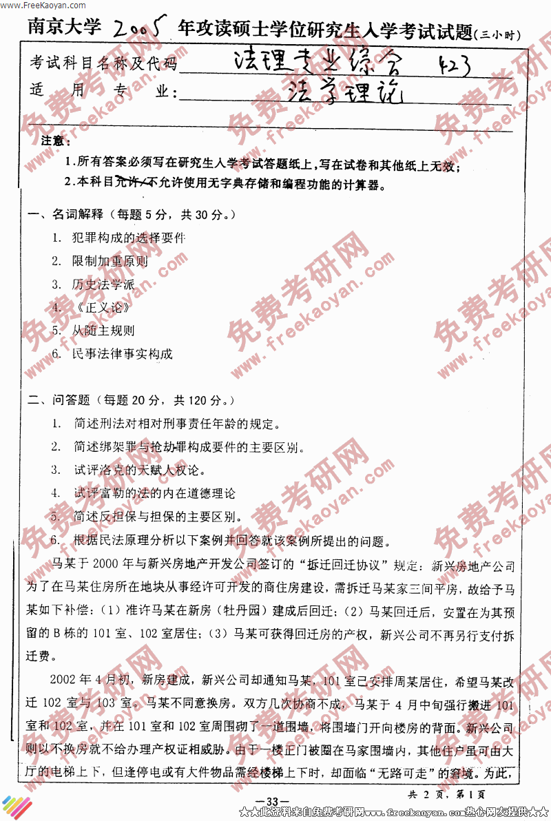 南京大学2005年考研真题-法理专业综合