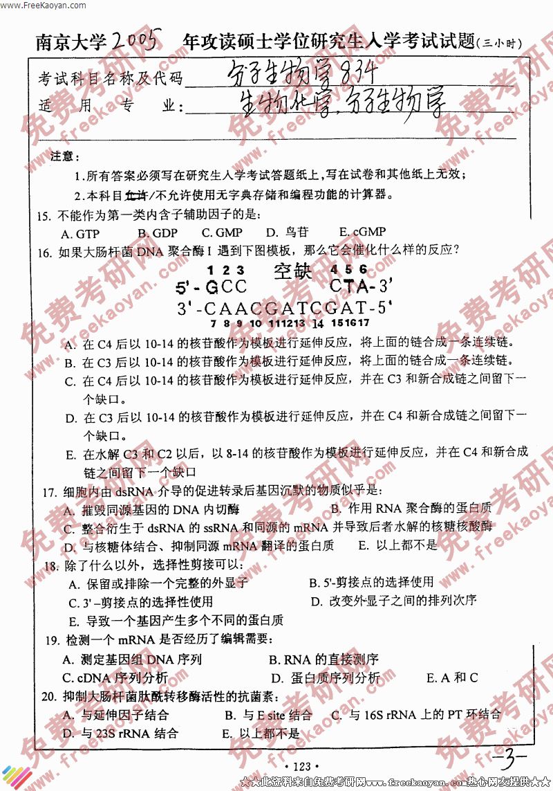专业课考研经验 本站小编 FreeKaoyan 2018-01-22南京大学2005年考研真题-第四季环境