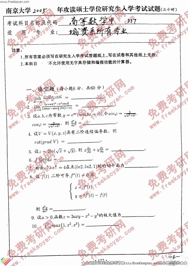 专业课考研经验 本站小编 FreeKaoyan 2018-01-22南京大学2005年考研真题-地球物理学
