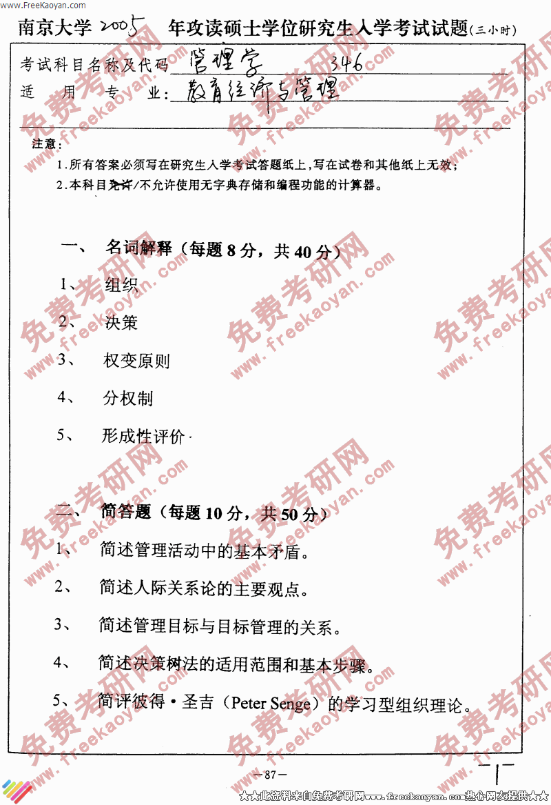 南京大学2005年考研真题-管理学