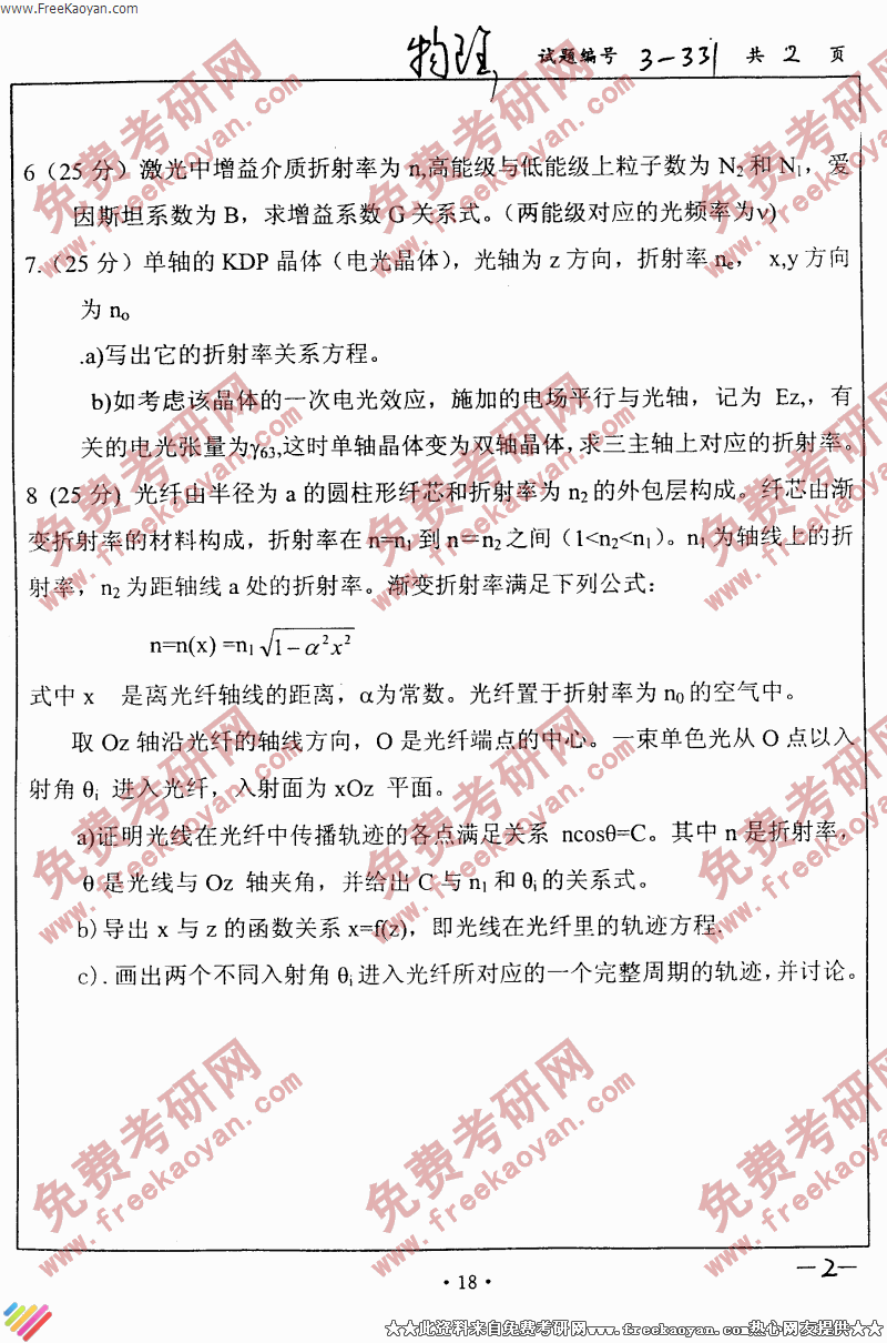 专业课考研经验 本站小编 FreeKaoyan 2018-01-22南京大学2005年考研真题-高分子化学与物理
