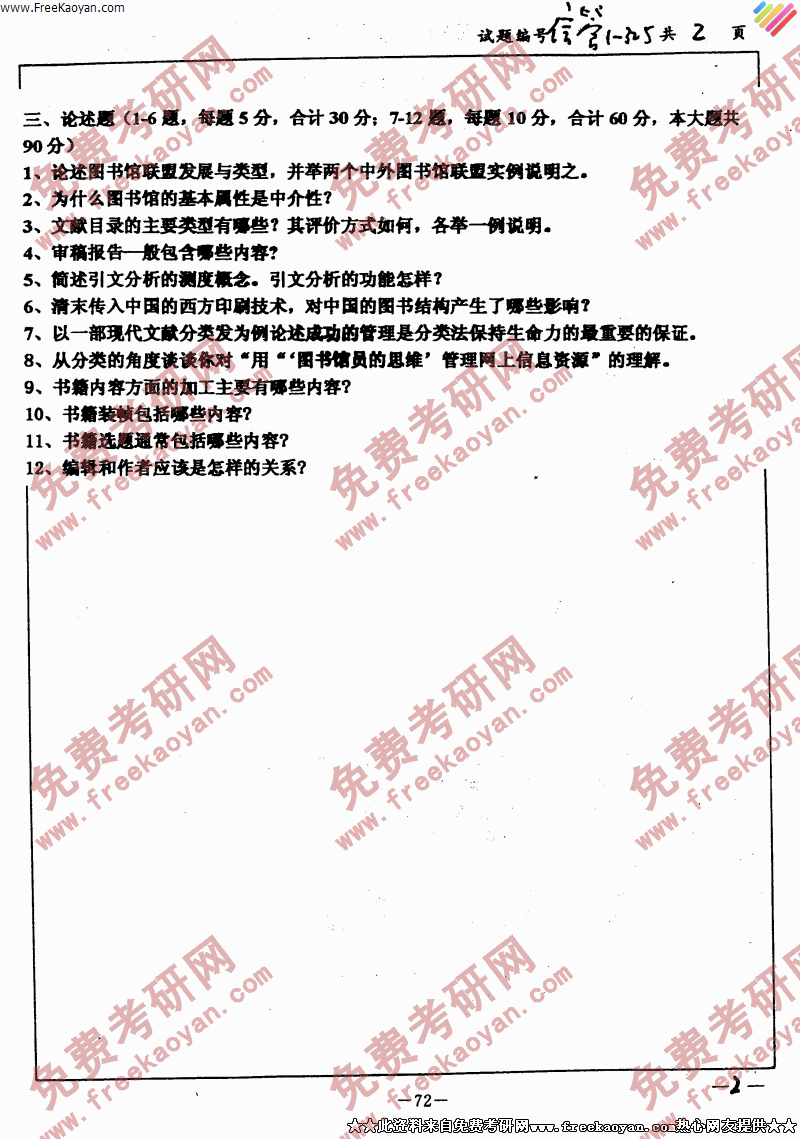 南京大学2005年考研真题-图书馆学、文献学、信息组织基础(2)