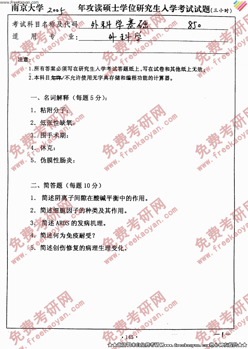专业课考研经验 本站小编 FreeKaoyan 2018-01-22南京大学2005年考研真题-分子生物学