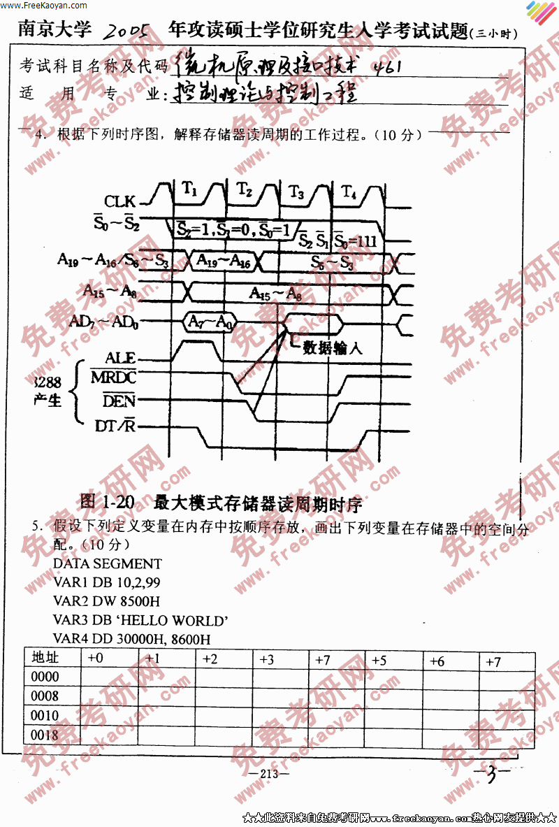 南京大学2005年考研真题-微机原理及接口技术(3)