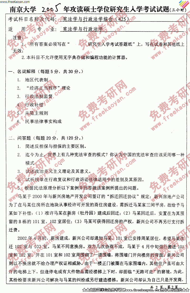 南京大学2005年考研真题-宪法学与行政法综合