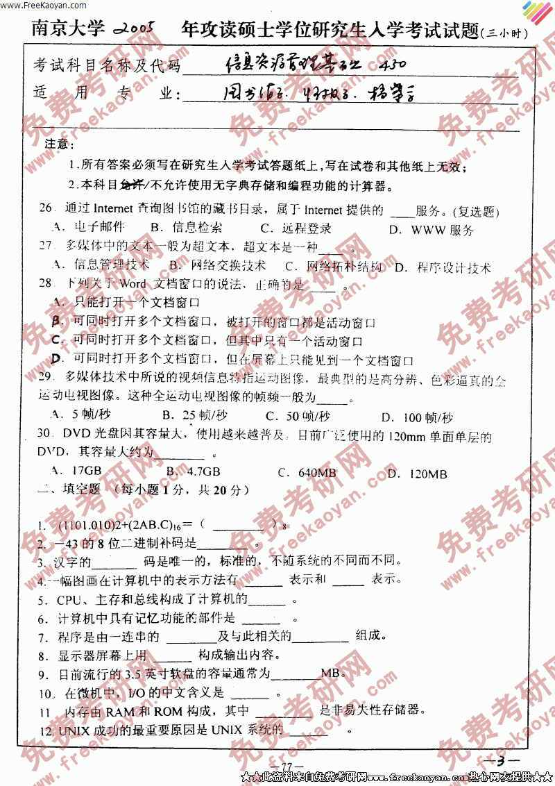 专业课考研经验 本站小编 FreeKaoyan 2018-01-22南京大学2005年考研真题-微机原理及接口技术