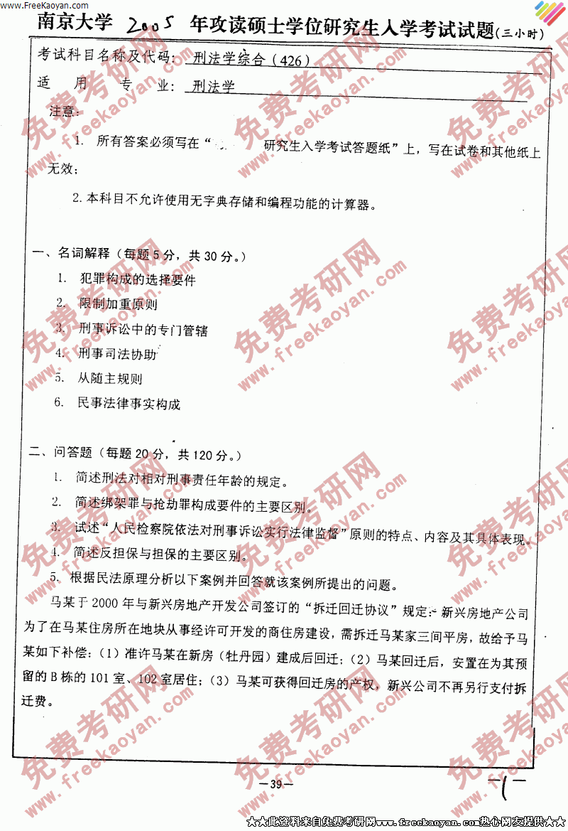 专业课考研经验 本站小编 FreeKaoyan 2018-01-22南京大学2005年考研真题-国际法学综合