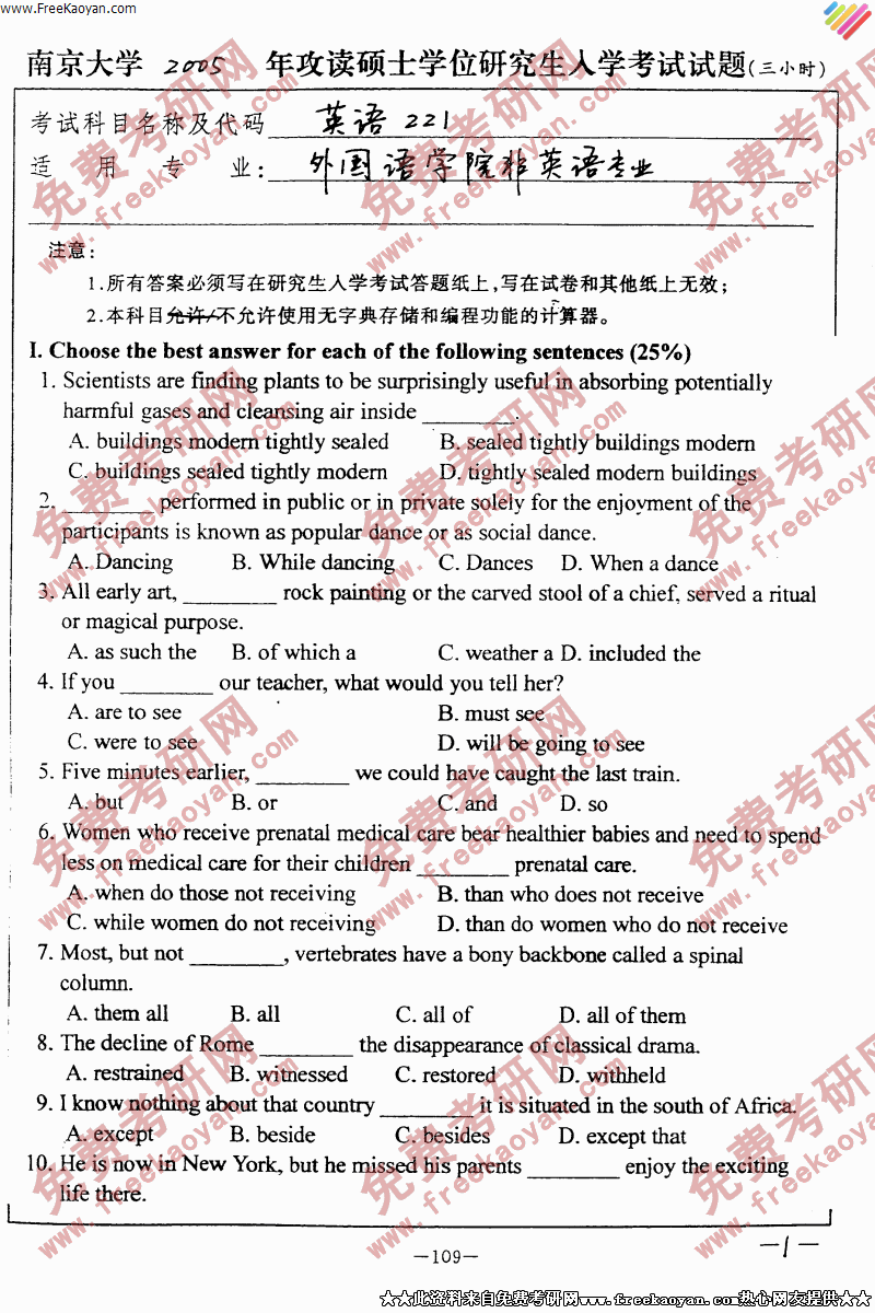 专业课考研经验 本站小编 FreeKaoyan 2018-01-22南京大学2005年考研真题-文学