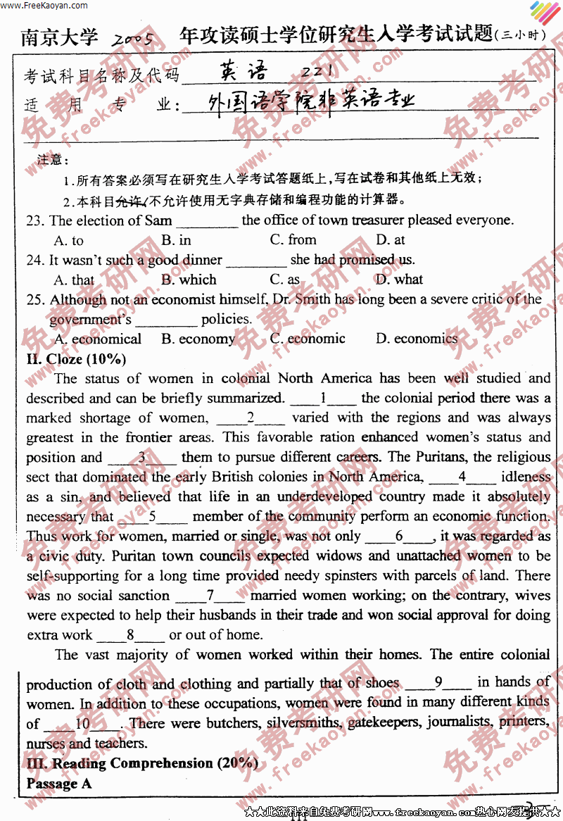 专业课考研经验 本站小编 FreeKaoyan 2018-01-22南京大学2005年考研真题-文学
