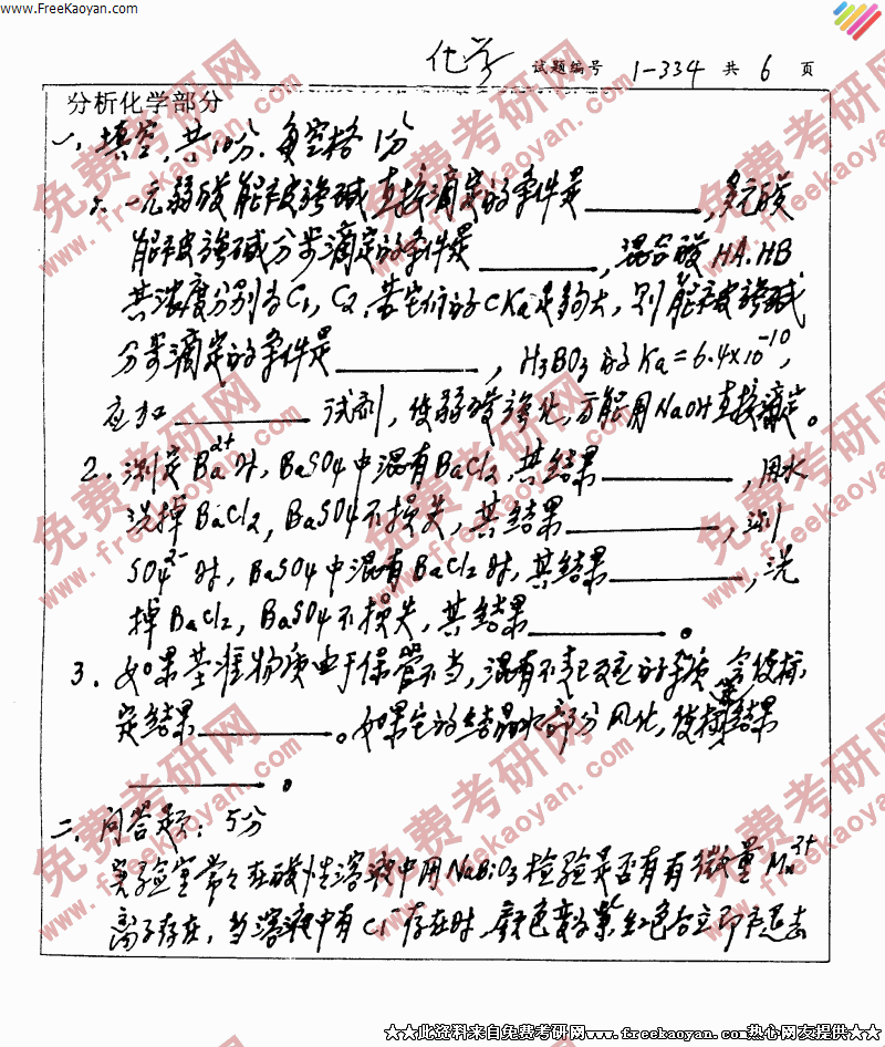 相关话题/考研真题 南京大学 分析化学 有机化学