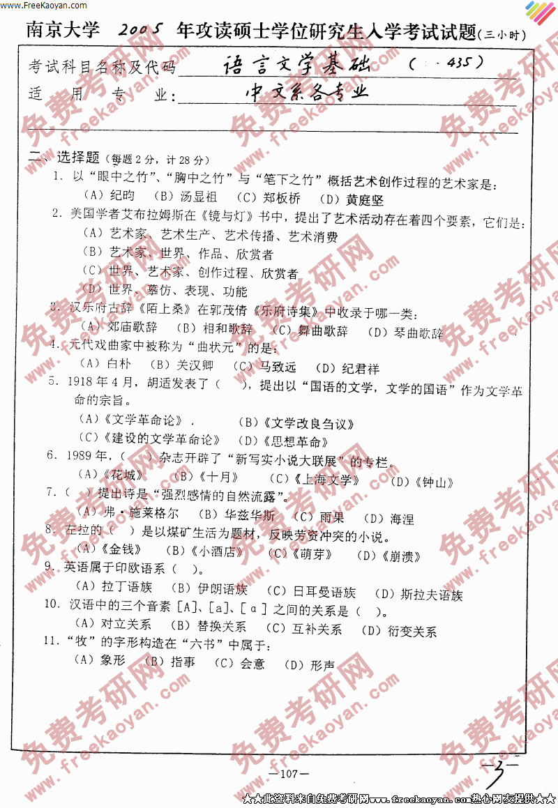 专业课考研经验 本站小编 FreeKaoyan 2018-01-22南京大学2005年考研真题-文学