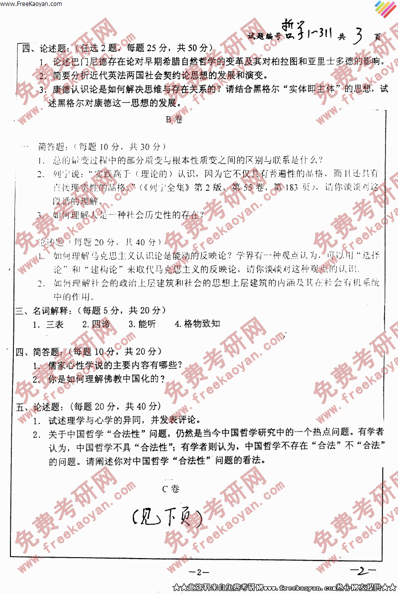 专业课考研经验 本站小编 FreeKaoyan 2018-01-22南京大学2005年考研真题-现代西方哲学