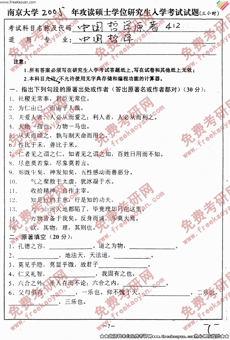 专业课考研经验 本站小编 FreeKaoyan 2018-01-22南京大学2005年考研真题-哲学综合