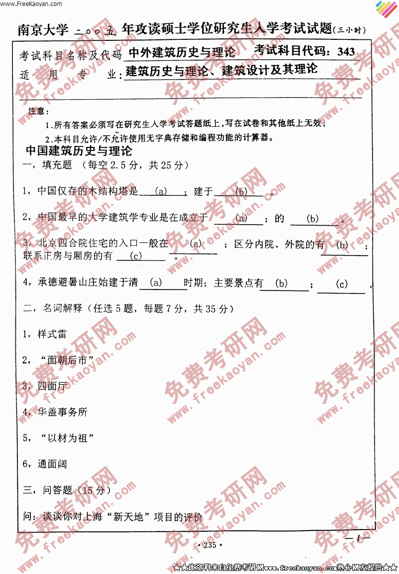 相关话题/建筑 考研真题 南京大学 历史 中外