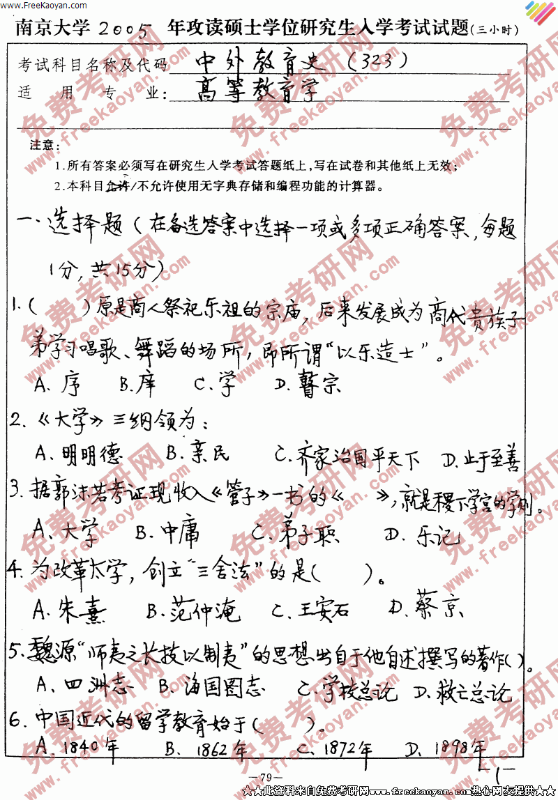 专业课考研经验 本站小编 FreeKaoyan 2018-01-22南京大学2005年考研真题-中国古代史