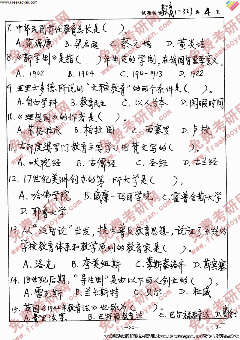 相关话题/考研真题 南京大学 教育史 中外