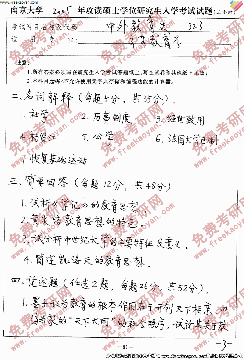 相关话题/考研真题 南京大学 教育史 中外