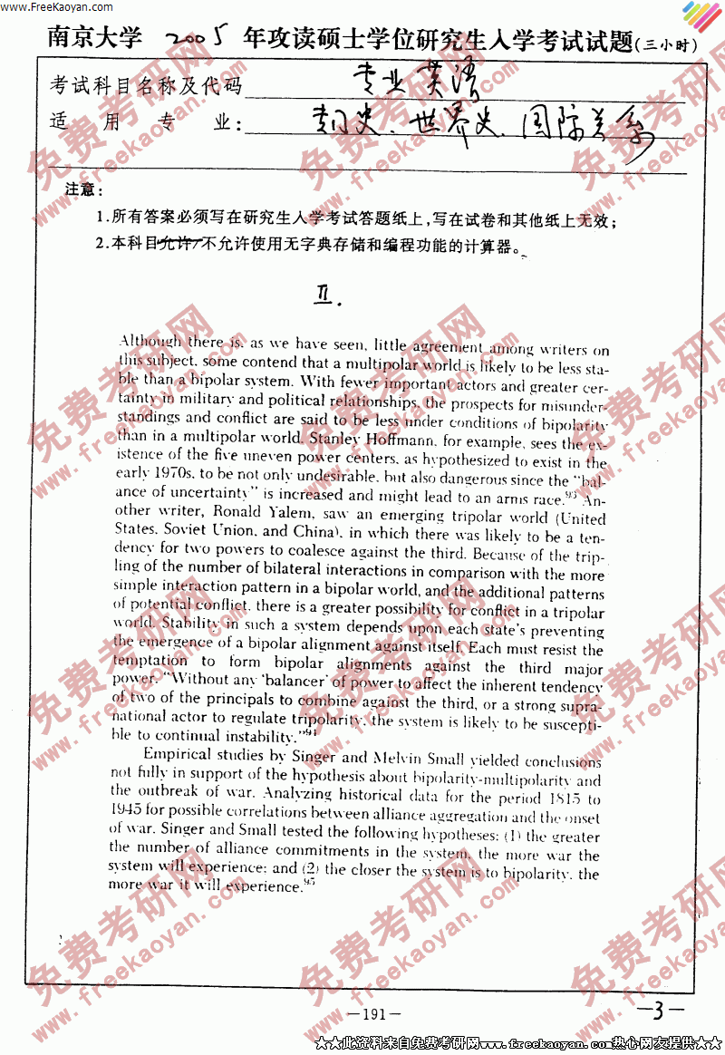 专业课考研经验 本站小编 FreeKaoyan 2018-01-22南京大学2005年考研真题-中外政治制度史
