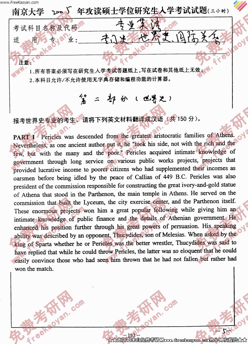 专业课考研经验 本站小编 FreeKaoyan 2018-01-22南京大学2005年考研真题-中国古代史