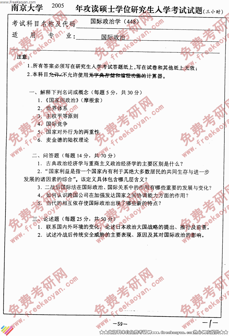 专业课考研经验 本站小编 FreeKaoyan 2018-01-22南京大学2005年考研真题-国际关系