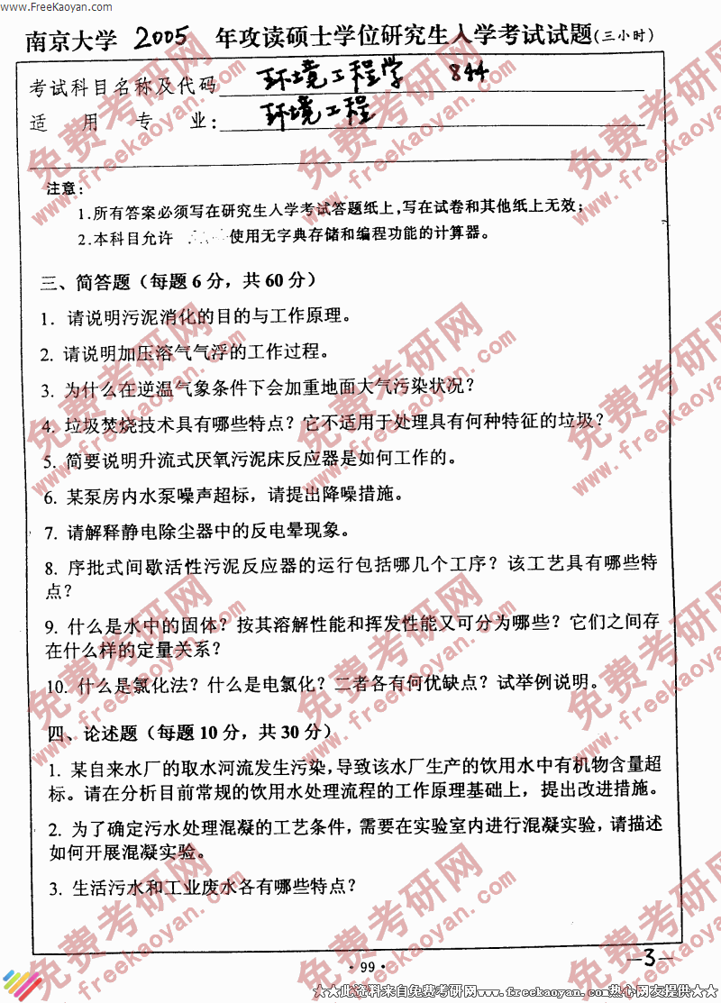 专业课考研经验 本站小编 FreeKaoyan 2018-01-22南京大学2005年考研真题-专业综合(气象学,大气物理与大气环境)