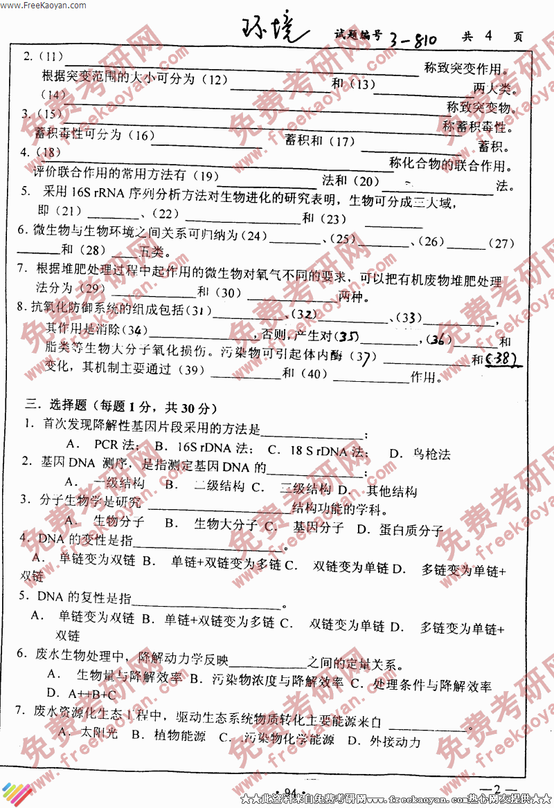 专业课考研经验 本站小编 FreeKaoyan 2018-01-22南京大学2005年考研真题-环境工程学