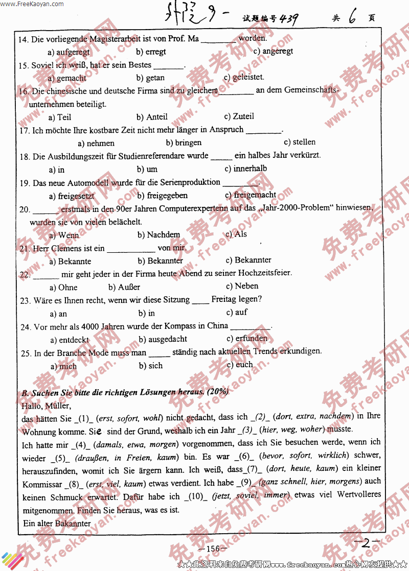 南京大学2005年考研真题-基础德语(2)