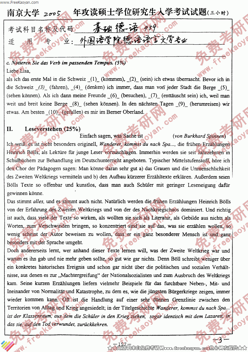 专业课考研经验 本站小编 FreeKaoyan 2018-01-22南京大学2005年考研真题-汉语