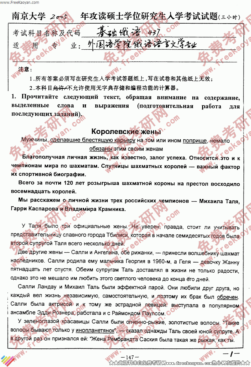 专业课考研经验 本站小编 FreeKaoyan 2018-01-22南京大学2005年考研真题-汉语