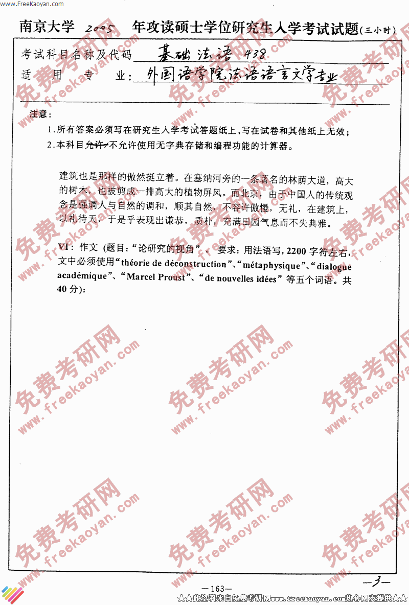南京大学2005年考研真题-基础法语(3)