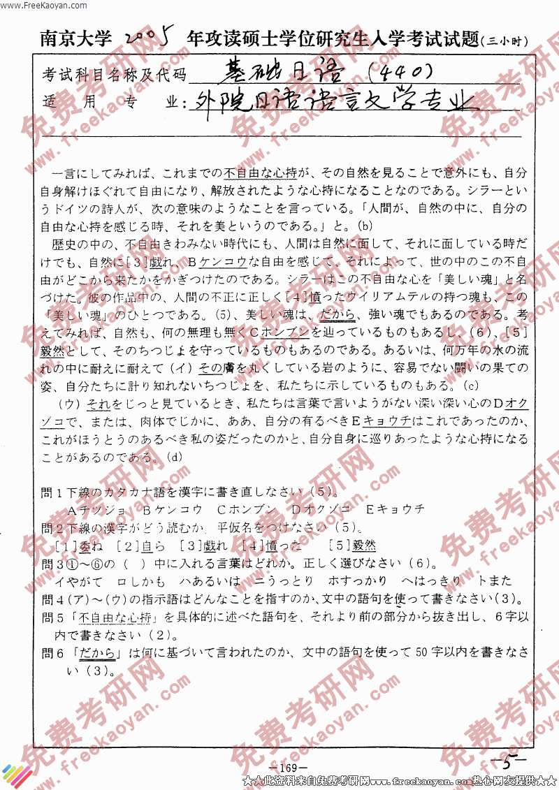 专业课考研经验 本站小编 FreeKaoyan 2018-01-22南京大学2005年考研真题-汉语