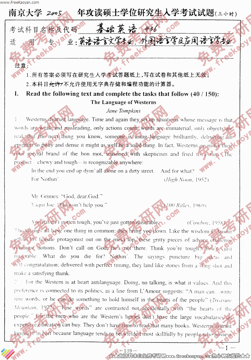 专业课考研经验 本站小编 FreeKaoyan 2018-01-22南京大学2005年考研真题-汉语