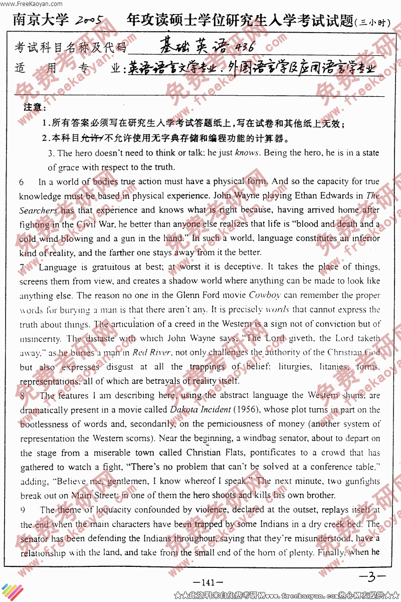 专业课考研经验 本站小编 FreeKaoyan 2018-01-22南京大学2005年考研真题-汉语
