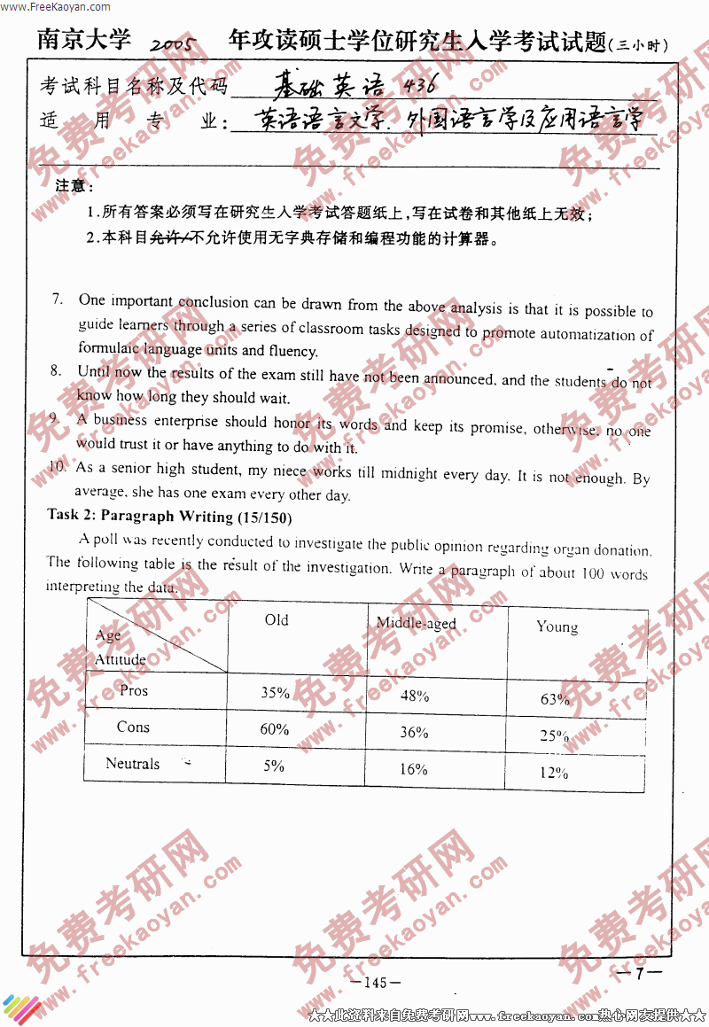 南京大学2005年考研真题-基础英语(436)(7)