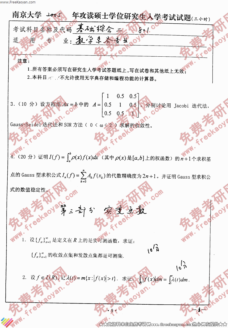南京大学2005年考研真题-基础综合(二)(数学系各专业)(3)