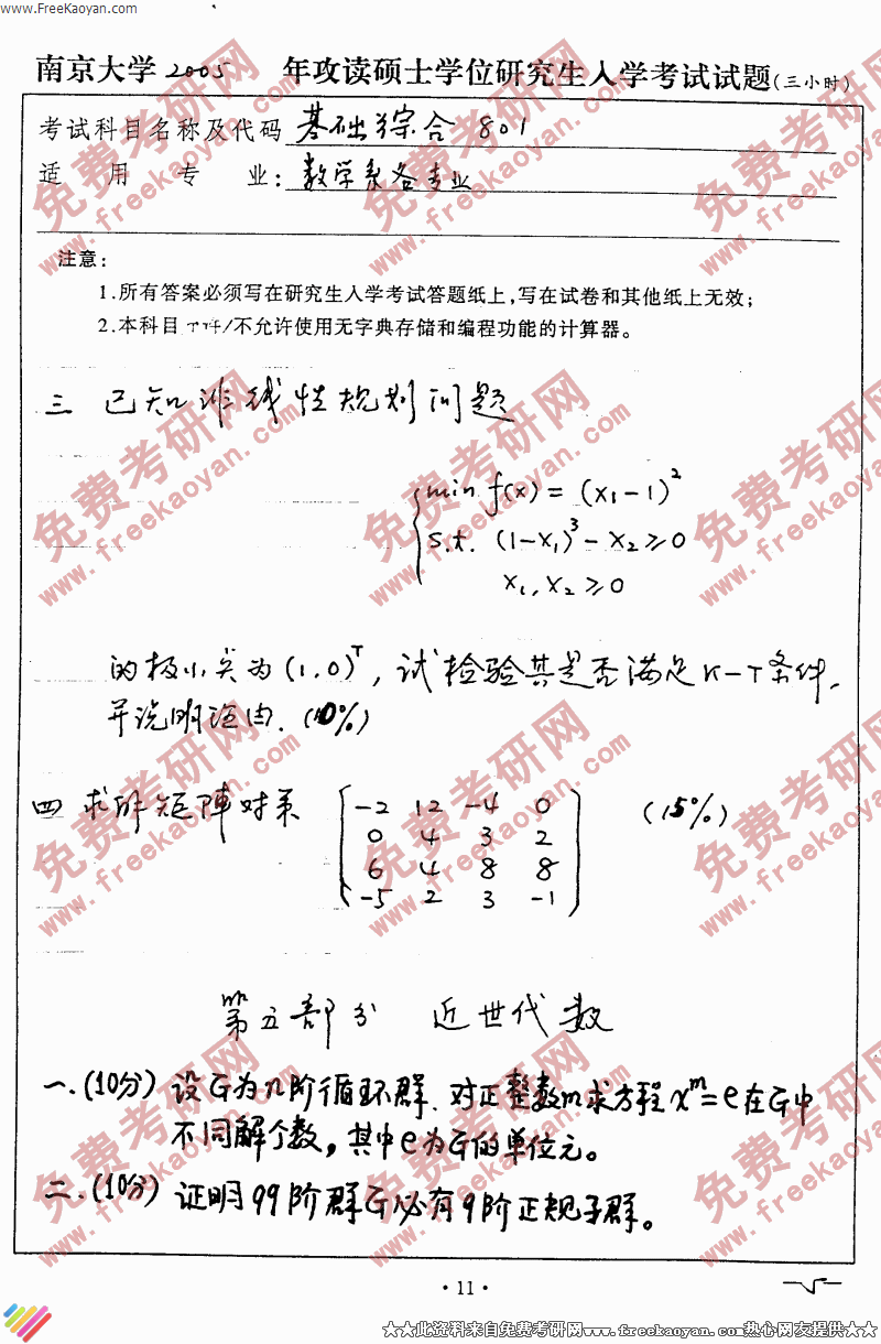 专业课考研经验 本站小编 FreeKaoyan 2018-01-22南京大学2005年考研真题-基础英语