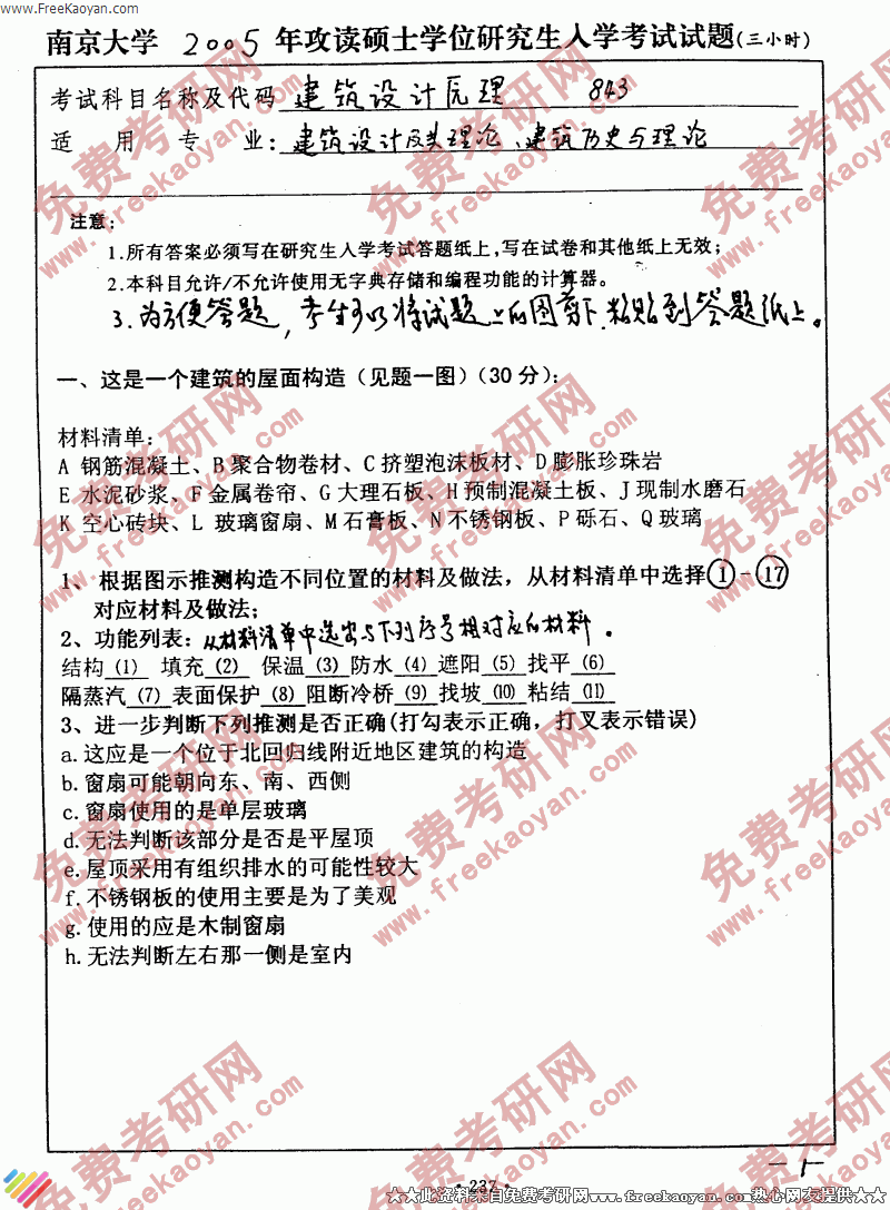 专业课考研经验 本站小编 FreeKaoyan 2018-01-22南京大学2005年考研真题-基础英语