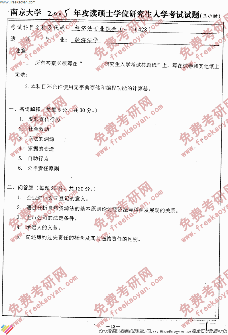 专业课考研经验 本站小编 FreeKaoyan 2018-01-22南京大学2005年考研真题-经济法专业综合(二)